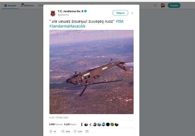 Sosya medya hesabını etkin kullanan devlet kurumlarından olan Jandarma Genel Komutanlığı, Twitter’daki resmi hesabından ilginç bir paylaşımda bulundu.