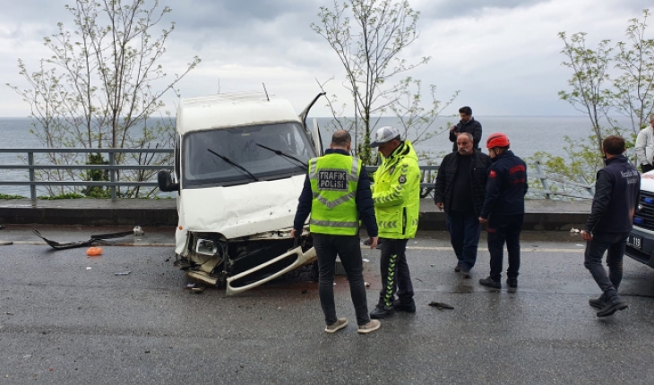 Akçaabat’a bağlı Akçakale Mahallesi’nde seyreden N.K. idaresindeki minibüs, yolun sağındaki bariyerlere çarptı.